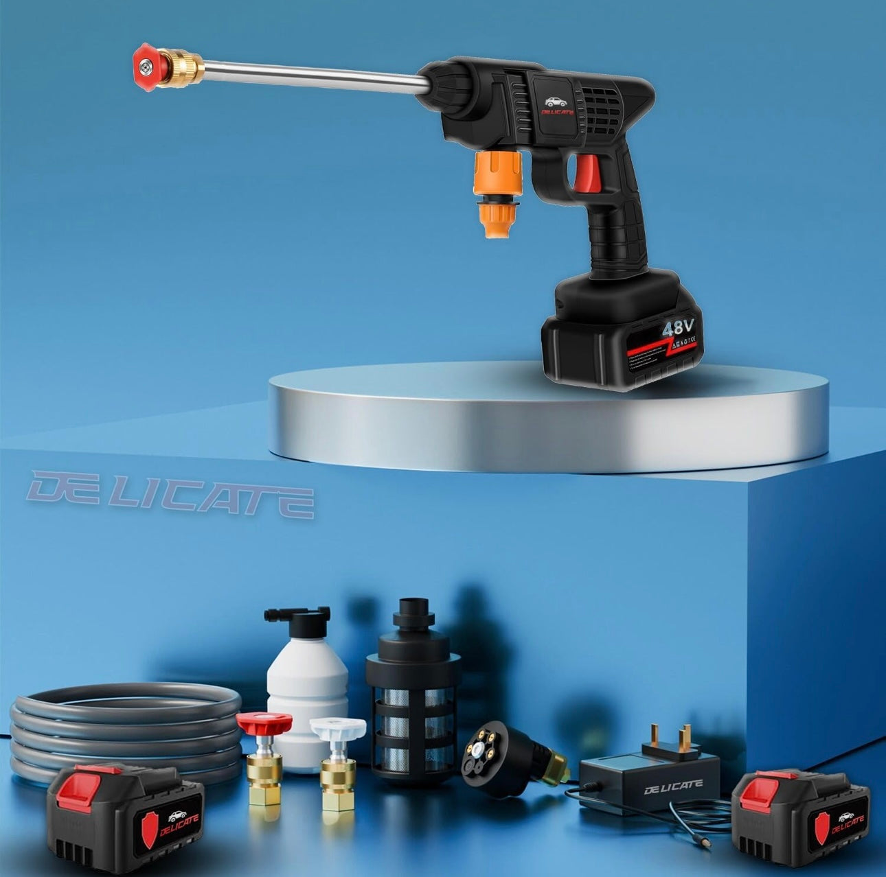 Bring professional car & home cleaning to your fingertips with the Cordless 48V Electric Pressure Washer Gun. Designed with double batteries for longer usage and a multi-function nozzle, this portable power washer makes cleaning fast, effortless, and fun!